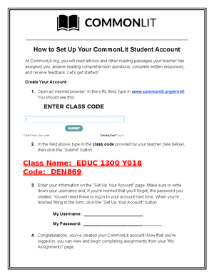 Common Lit Student Sign Up Instructions With Code Y018 How To Set Up Your Commonlit Student Studocu